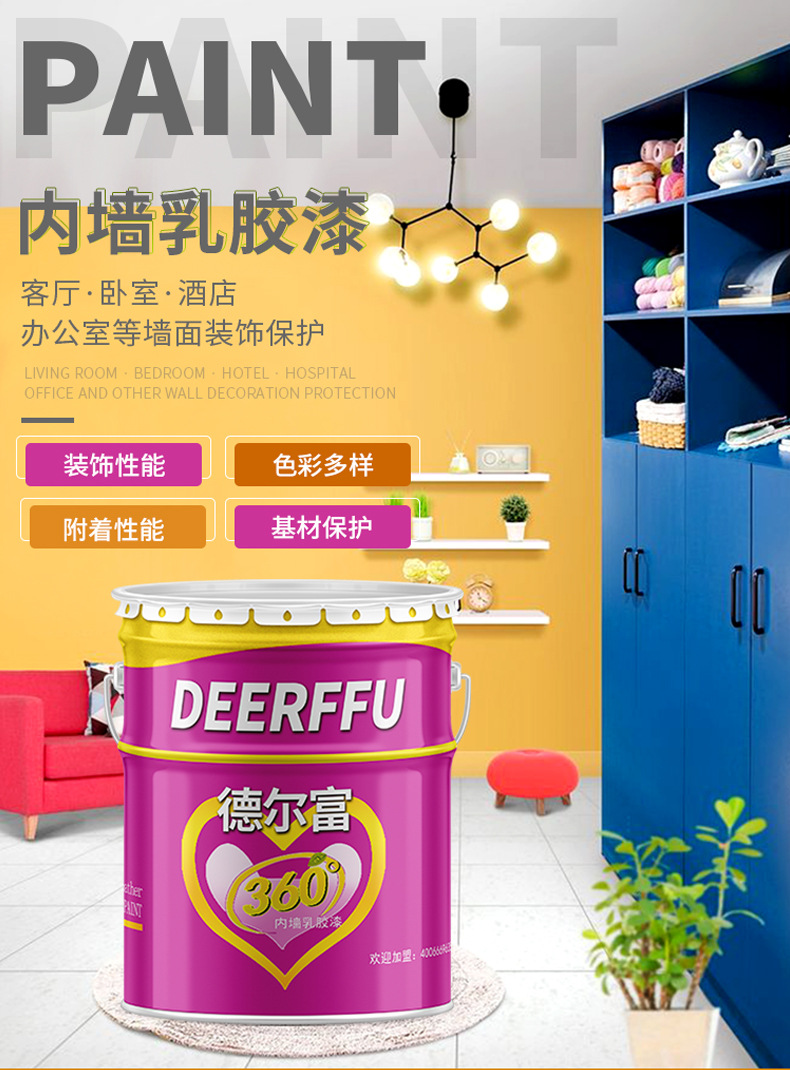 【德爾富】內墻乳膠漆的主要功能是裝飾和保護建筑內部墻面,使建筑內整潔美觀,同時能起到保護建筑物內墻的作用,延長其使用壽命。