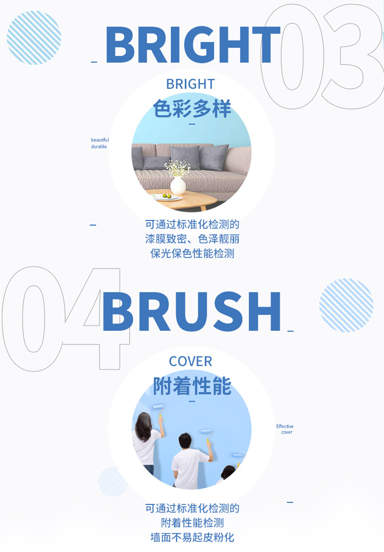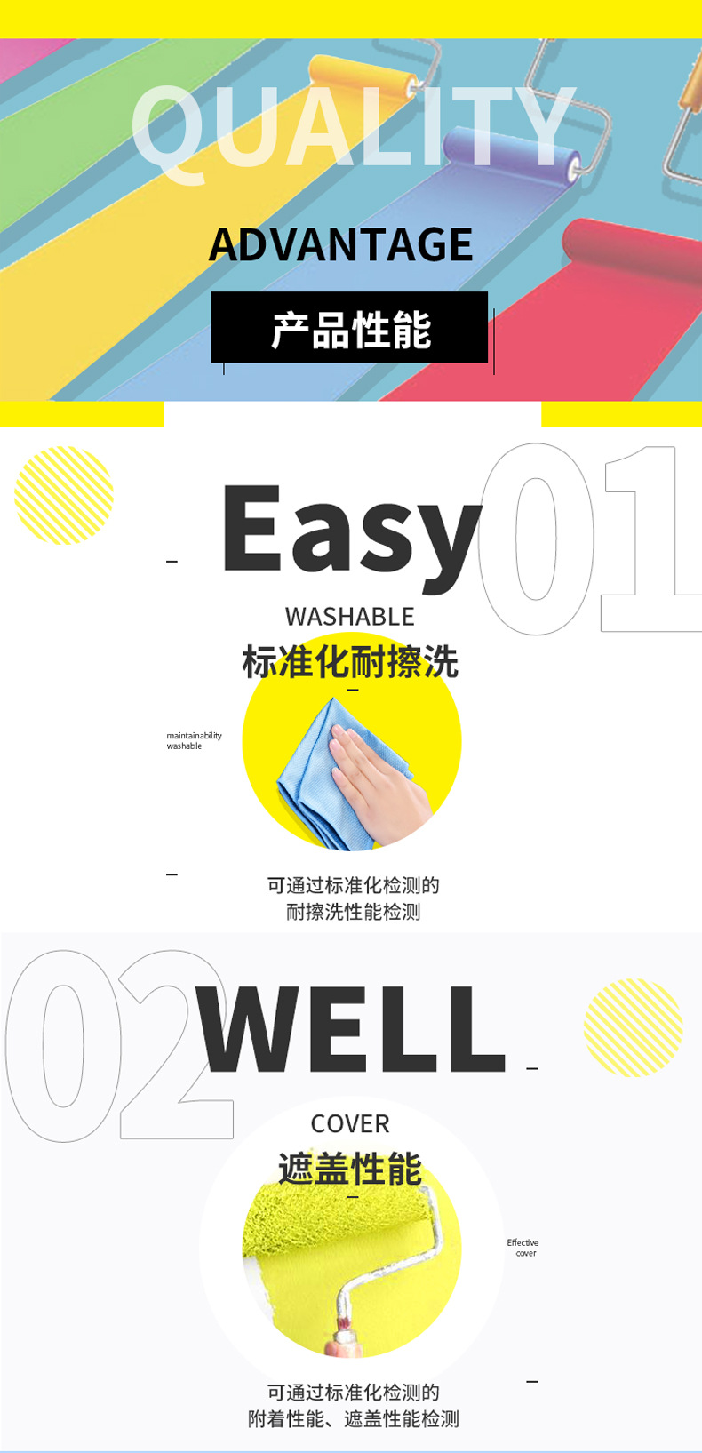 標準化耐擦洗性能:可沾水擦洗不傷墻面,簡單方便;