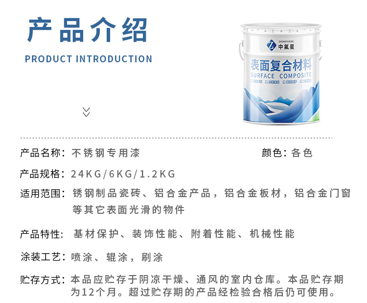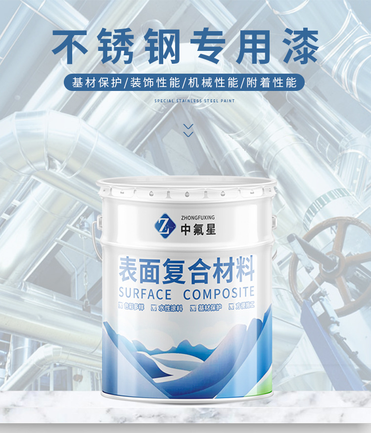 【中氟星】不銹鋼專用漆是我們針對光滑金屬表面不易涂裝上漆而研制的,具有可通過標準化檢測的物理機械性能和防腐性能。不銹鋼、鋁合金、鍍鋅板、鋁板、銅、合金、有色金屬等基材,由于其表面非常光滑,導(dǎo)致涂漆后出現(xiàn)掉漆脫落的問題,使用不銹鋼專用漆可解決這一問題。